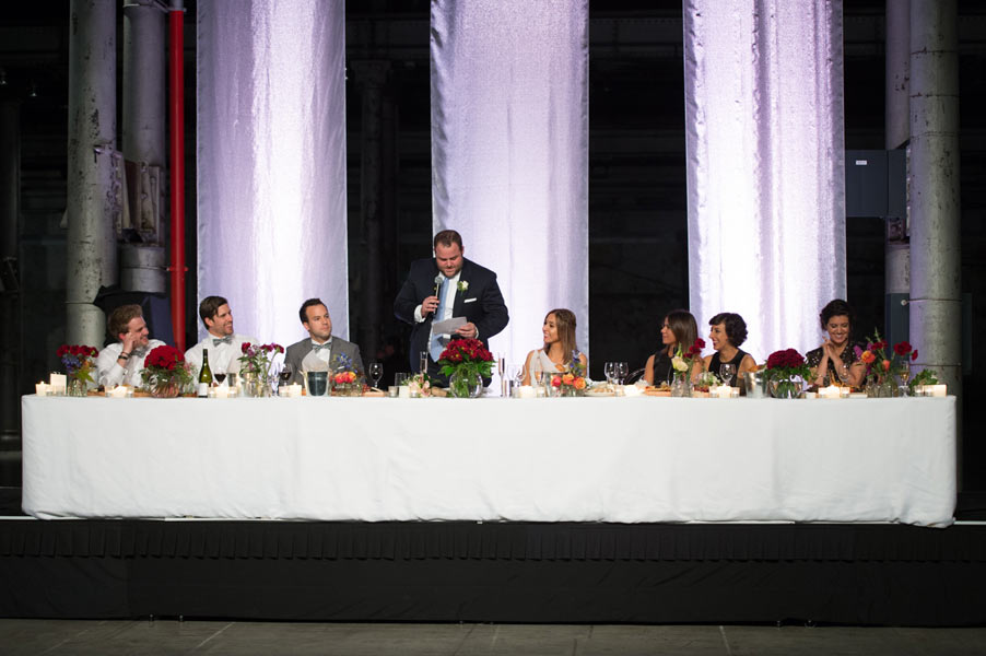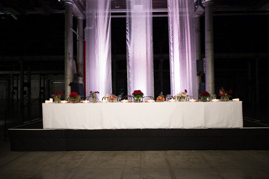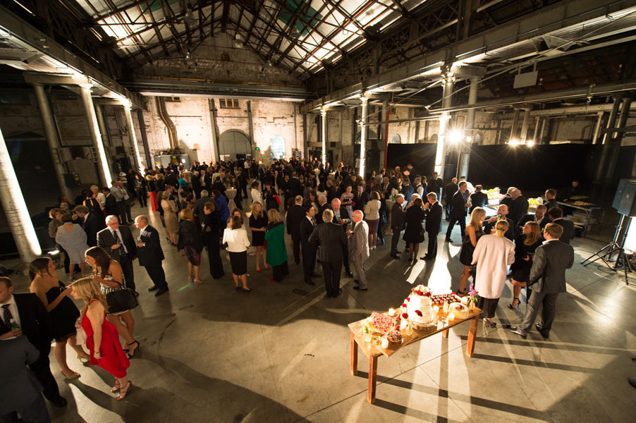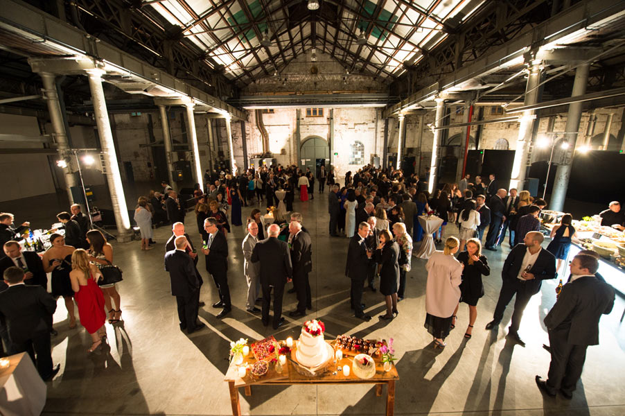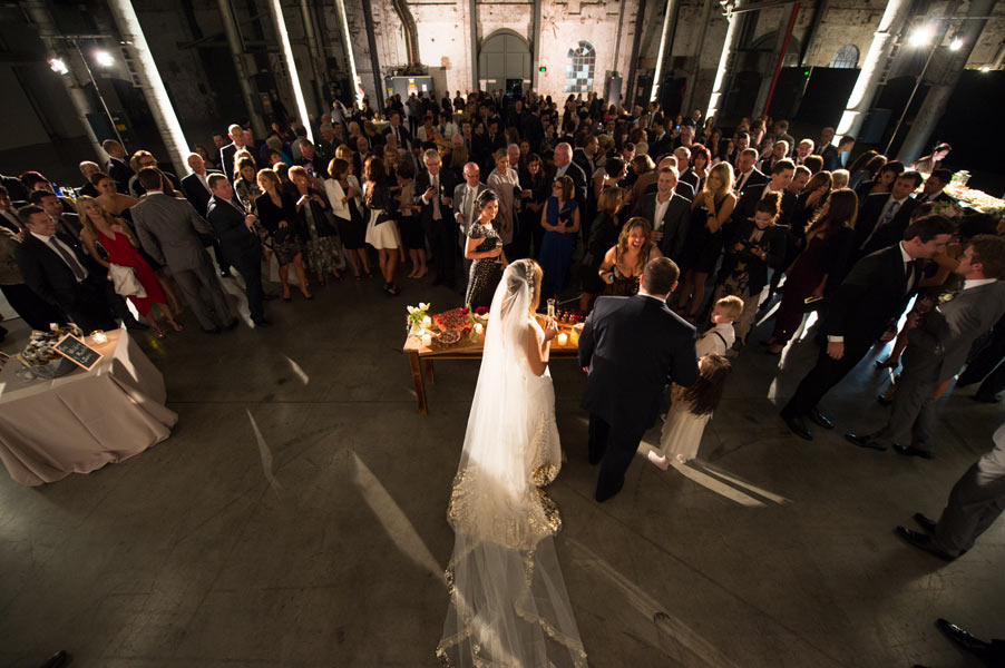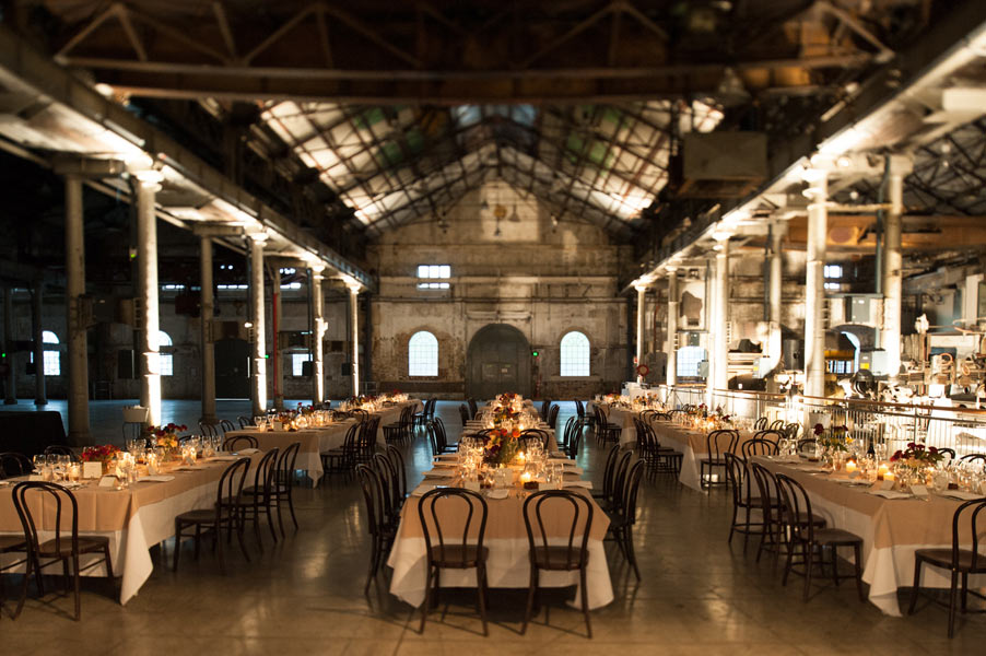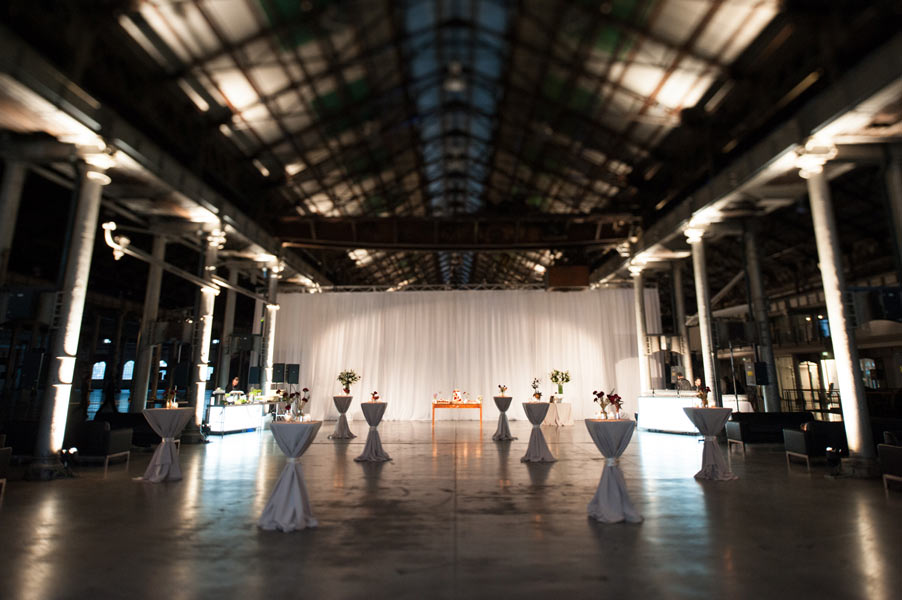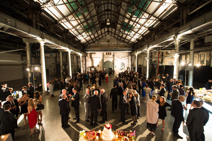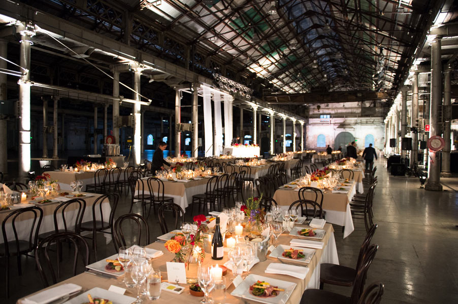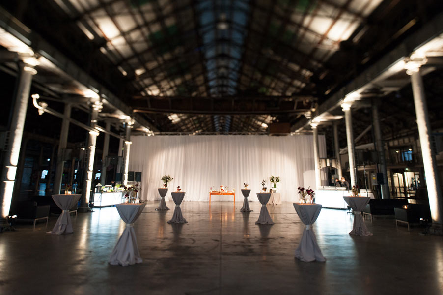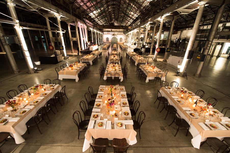 The reception was held in the extravagant Grand Hall at Australian Technology Park featuring towering cast iron columns, rustic brickwork and arched windows. Guests were seated in the elegantly draped hall where a lavish seafood station with oysters spilling from vintage casts spoiled their tastebuds.
