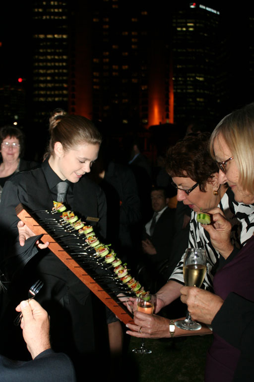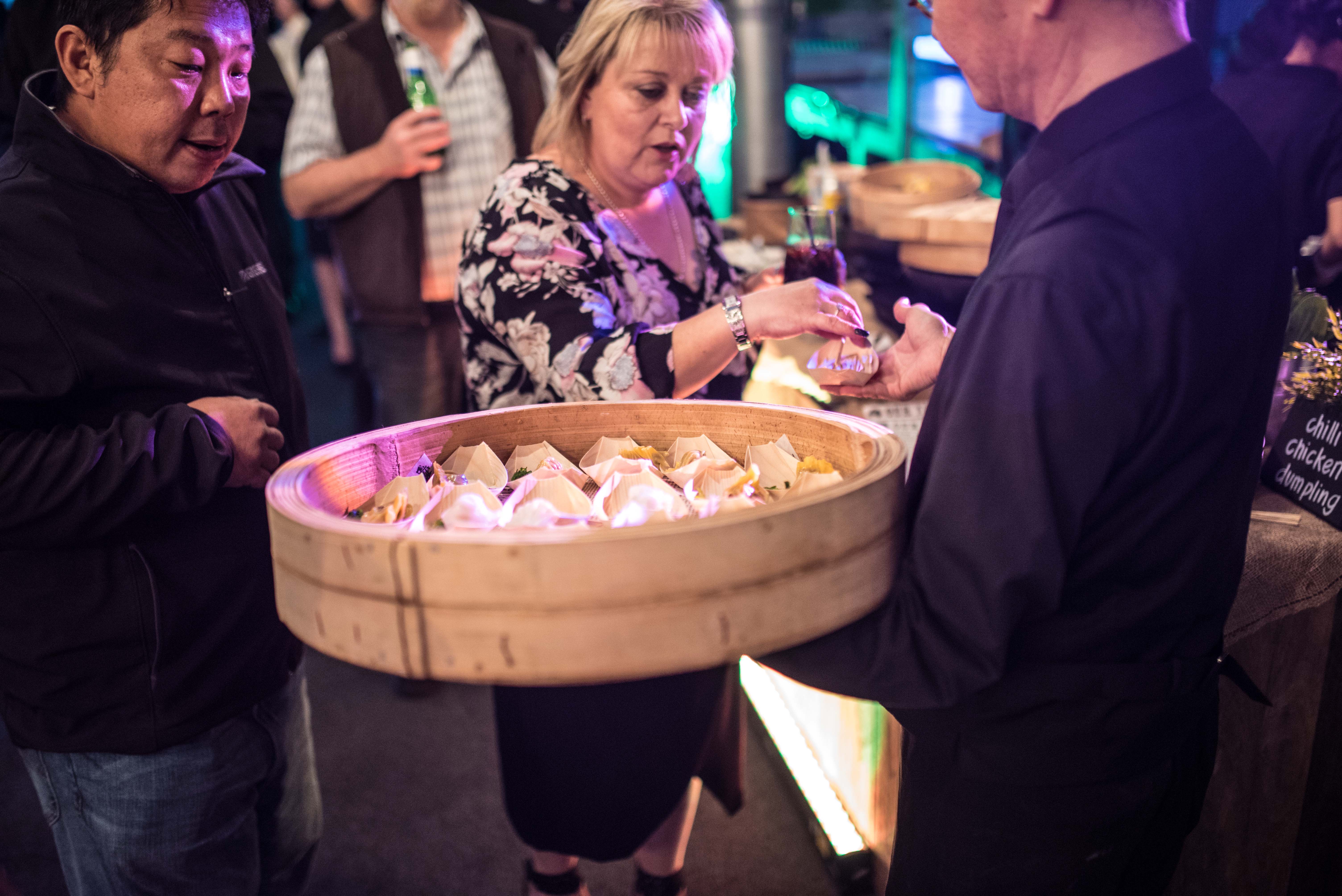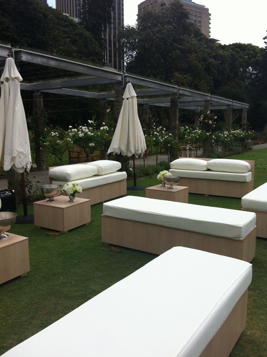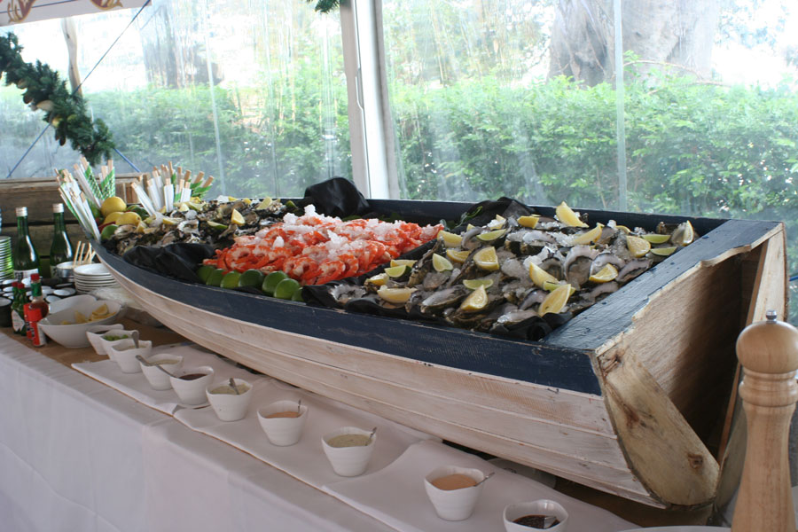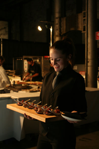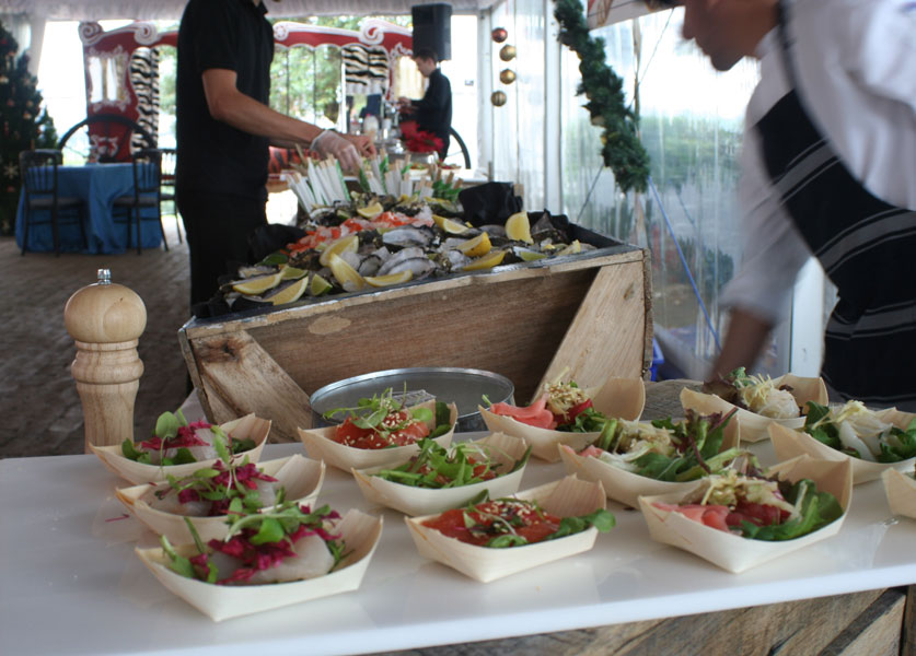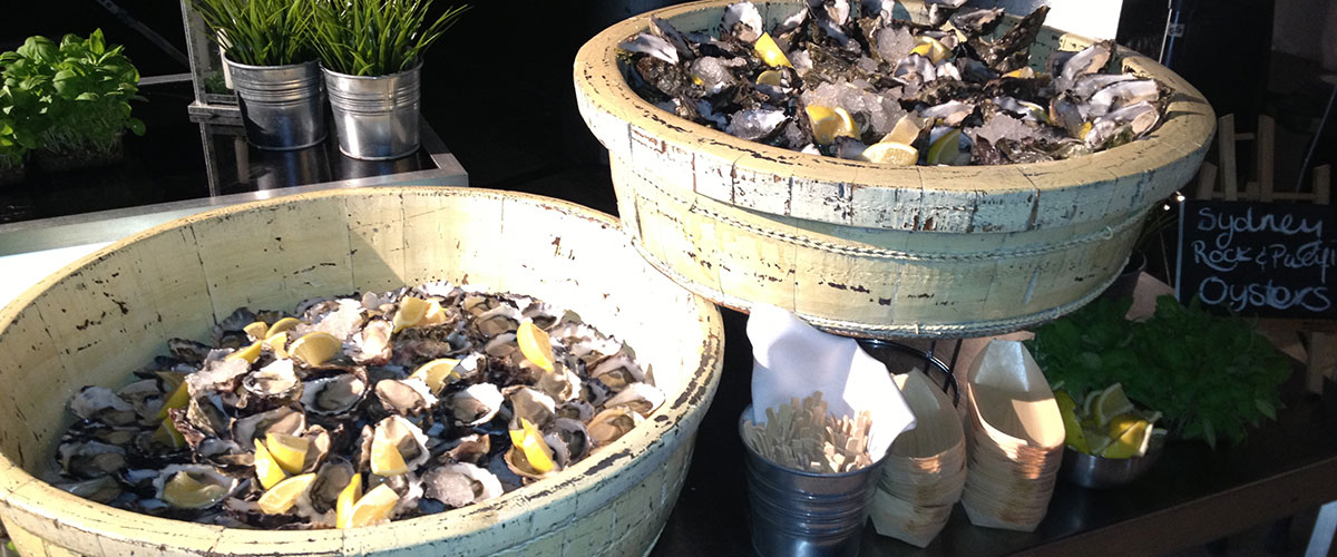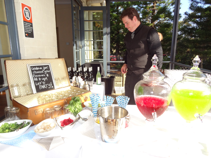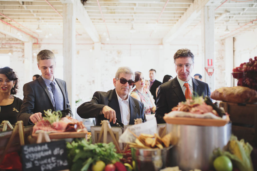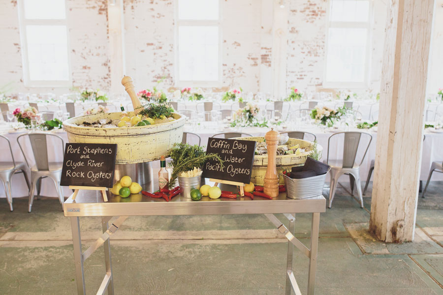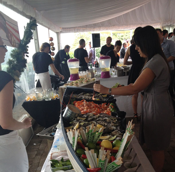 Fete stalls and wooden food trucks were positioned in the courtyard to add to the fun & vibrant theme of the day. Inside the marquee guests were greeted by a fresh oyster and raw bar displayed in a row boat with a selection of oysters, yamba prawns, hiramasa kingfish sashimi with young ginger & fuji apple salad, scallops with nashi pear dressing, yellowfin tuna & Atlantic salmon sashimi. Accompaniments included edamame beans, wakame salad, fresh lemons & limes and miniature clay cups of Dassai sake.