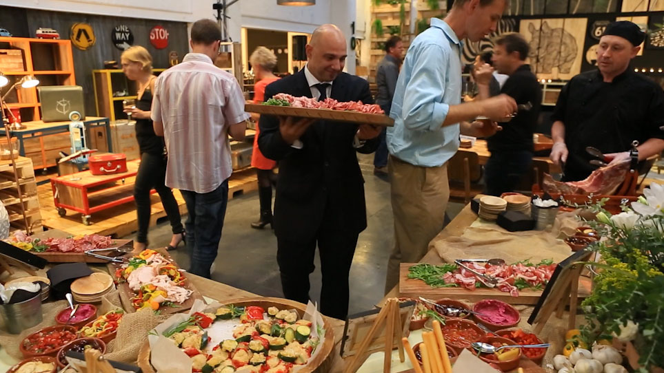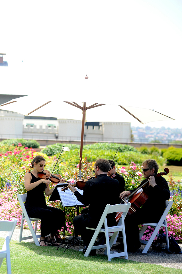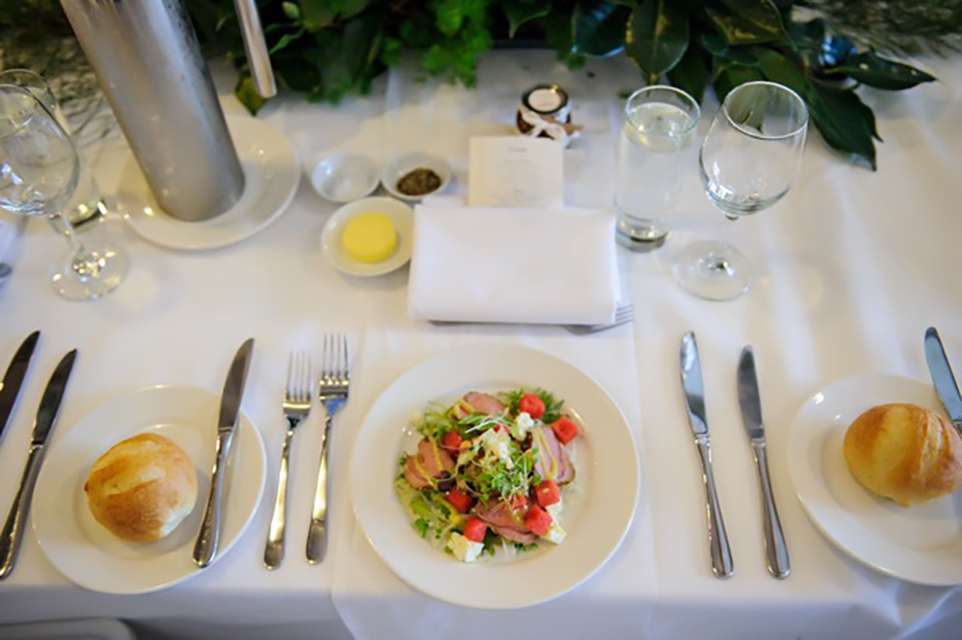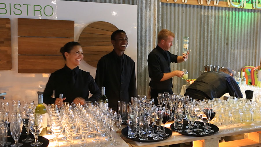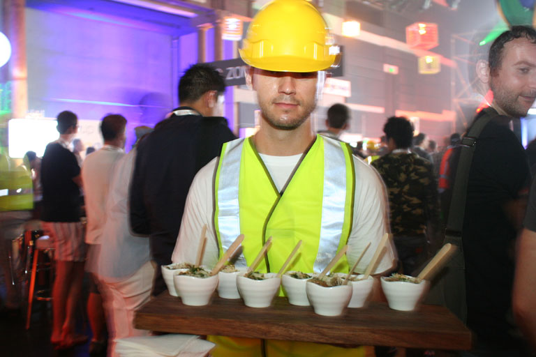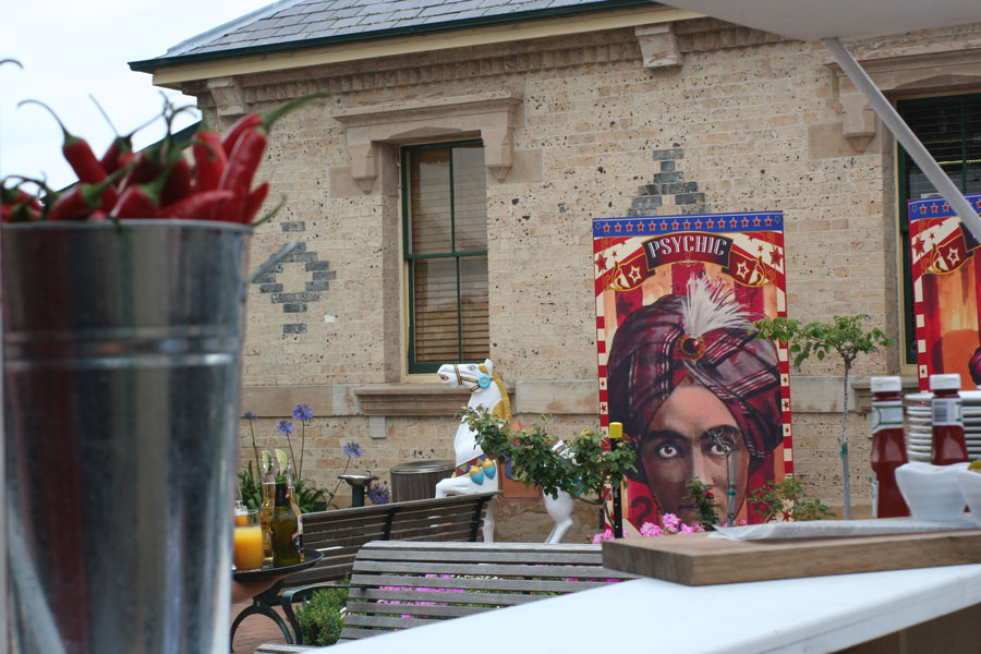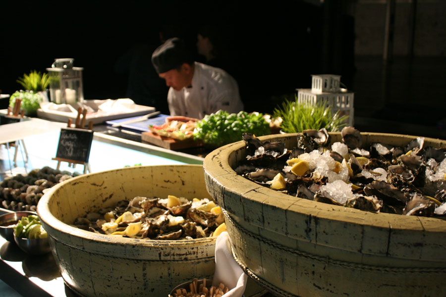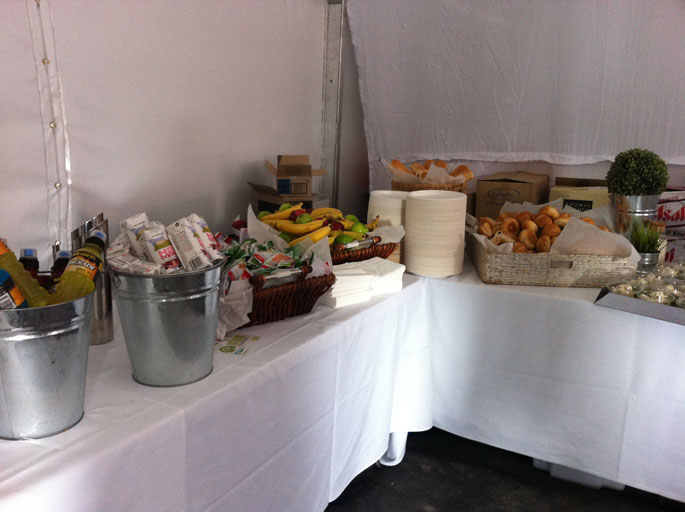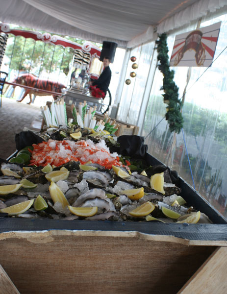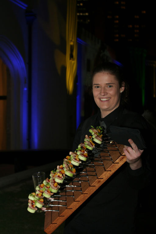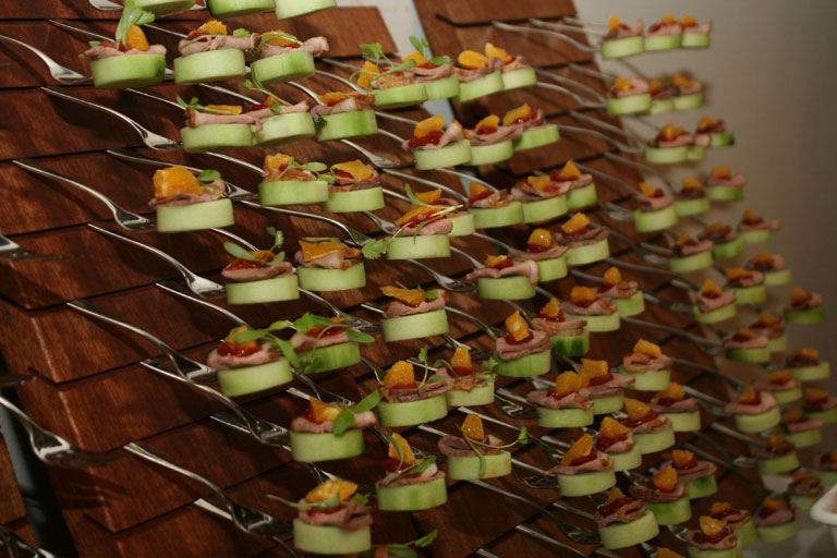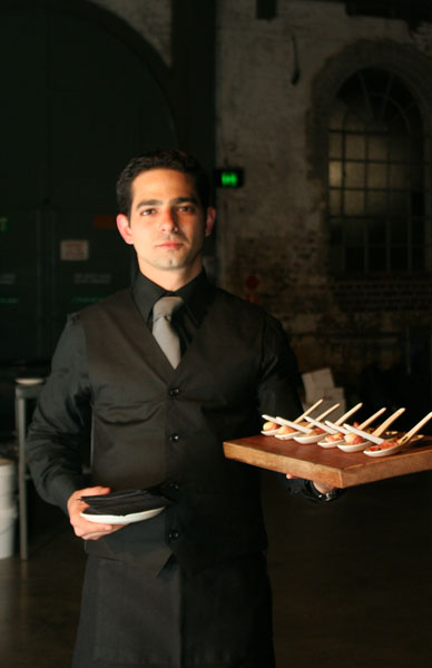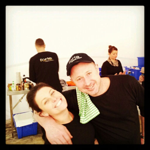 Fete stalls and wooden food trucks were positioned in the courtyard to add to the fun & vibrant theme of the day. Inside the marquee guests were greeted by a fresh oyster and raw bar displayed in a row boat with a selection of oysters, yamba prawns, hiramasa kingfish sashimi with young ginger & fuji apple salad, scallops with nashi pear dressing, yellowfin tuna & Atlantic salmon sashimi. Accompaniments included edamame beans, wakame salad, fresh lemons & limes and miniature clay cups of Dassai sake.