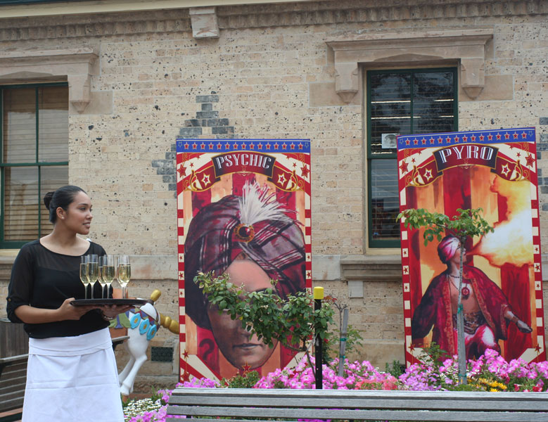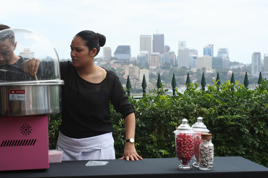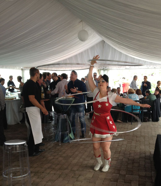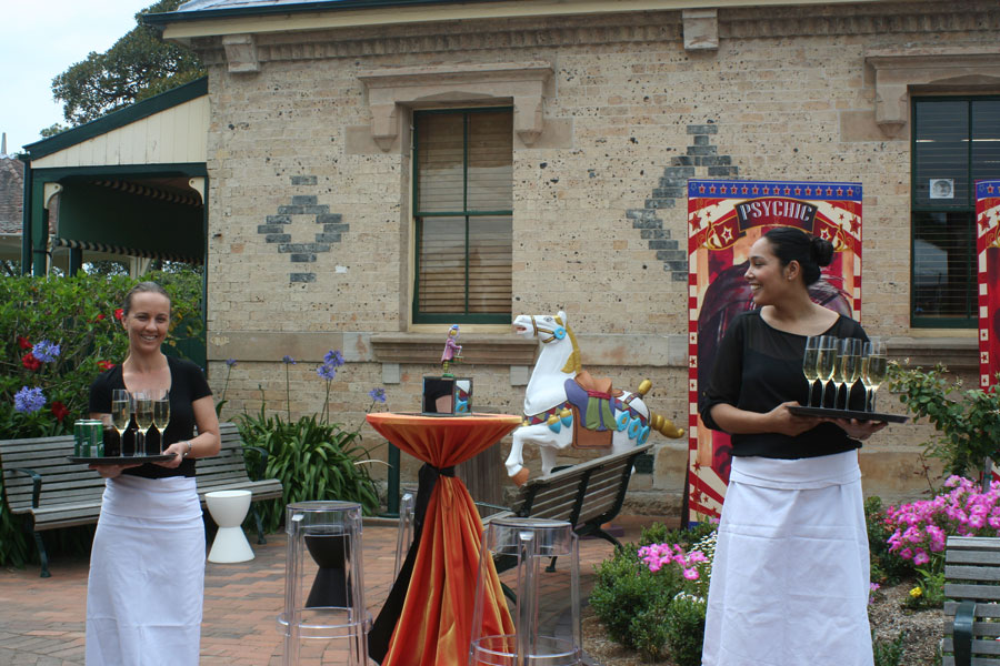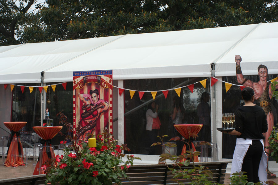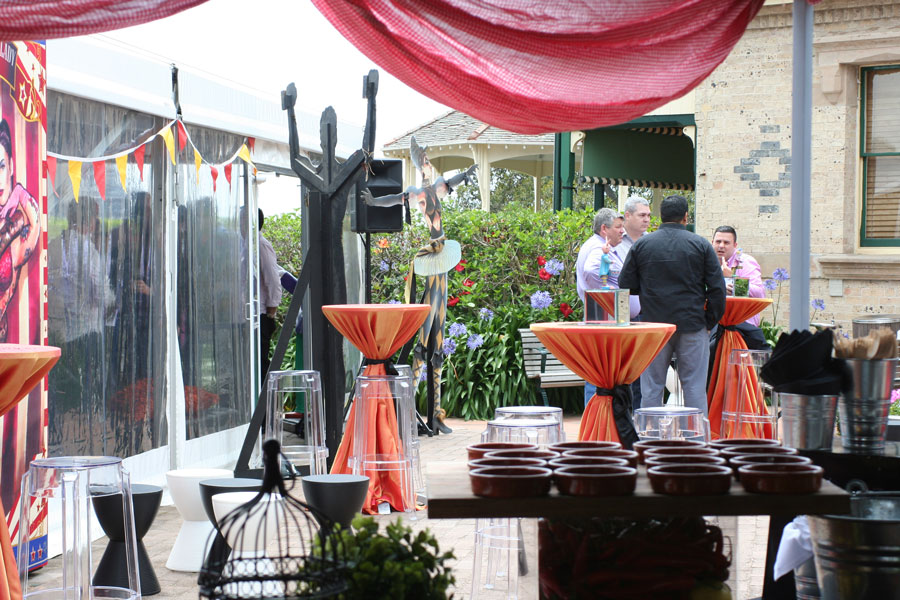 Forte recently worked with a client where the main objective of the day was to entertain and amaze guests. Circus was the theme and the Sydney Observatory Marquee and surrounding courtyards were transformed into a big top tent for the day. Guests were greeted appropriately by a ringleader and contortionist as well as the Forte wait staff who offered fairy floss and tantalising beverages. Large life-sized animal props were scattered around the area including a baby elephant, lion in its cage and white show horses complete with brightly coloured saddles & bridle. Throughout the afternoon a vast assortment of roving circus performers including stilt walkers, clowns, unicyclist, jugglers, hoola hoopers and balancing duos entertained and delighted guests with their enchanting (and occasionally jaw dropping) acts.