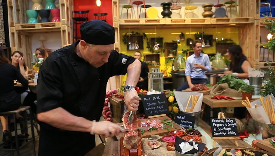Catalan Paella was served with an abundance of prawns, squid, chorizo and chicken, infused with saffron and smoked paprika and cooked in a theatrical 1.2m paella pan. Guests were also invited to indulge in a Christmas themed buffet included whole roasted honey & bourbon glazed leg ham and lobster mornay with white wine veloute, parmesan cheese & garlic…