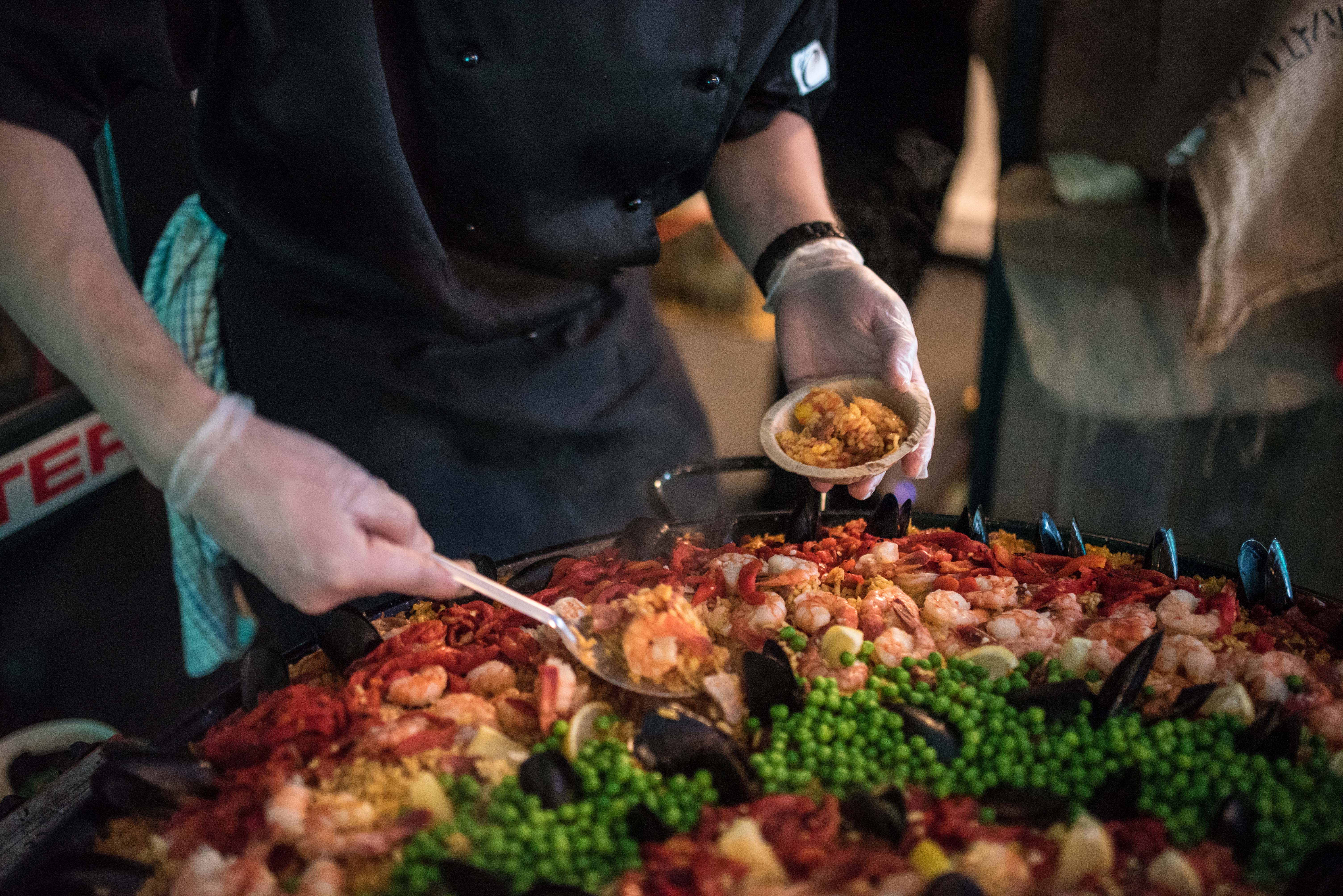 Outside the three food stalls were set up for a BBQ , Slider station & Catalan Paella. The BBQ items included a mix of luscious lobster tails with garlic butter & fresh shallots, grilled scampi with lemon, garlic & fresh parsley and chilli beef hot dogs with tomato & chipotle salsa.